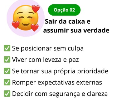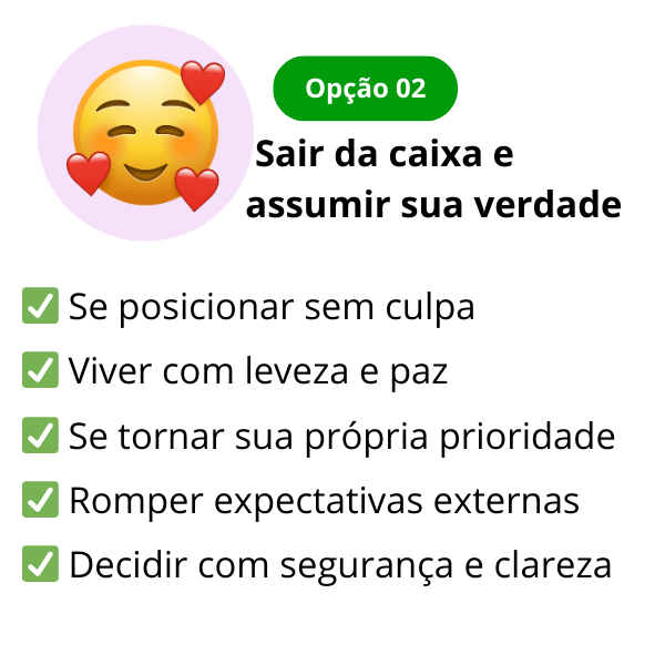 ✅ Sente que existe uma versão sua mais leve, mais verdadeira e mais segura… mas ela ainda está “presa dentro da caixa”.