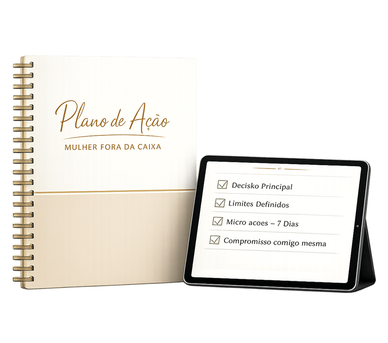 Comece hoje mesmo a aplicar o Roteiro Mulher Fora da Caixa e dê os primeiros passos para viver com mais autenticidade, coragem e liberdade emocional.
